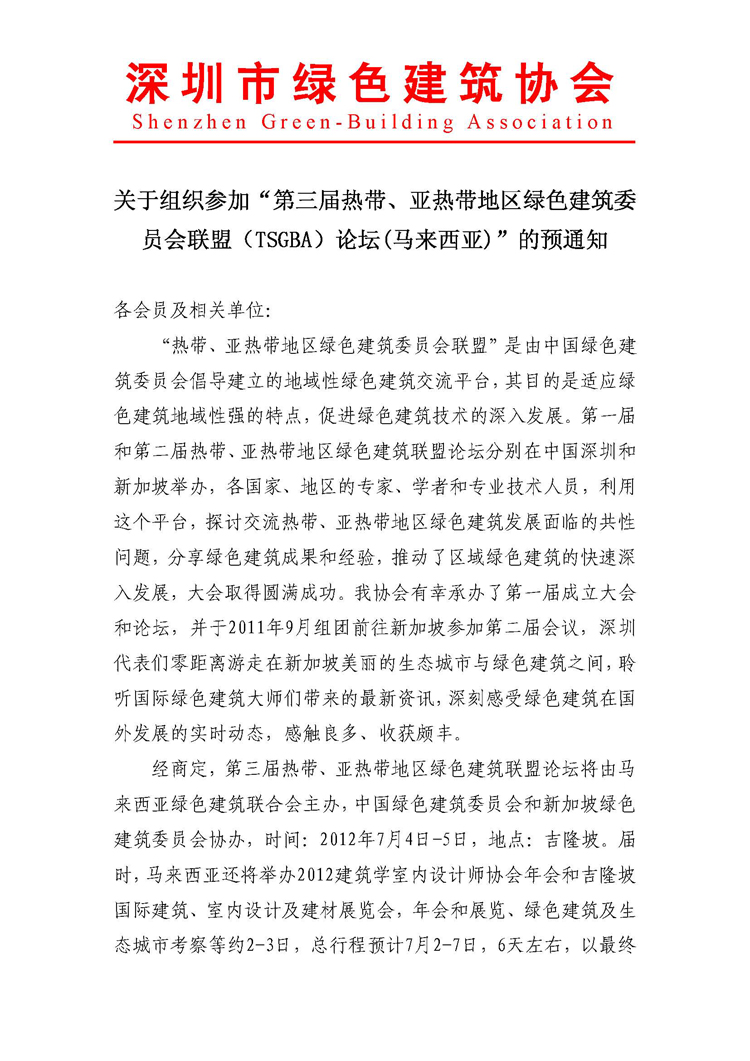 关于组织参加吉隆坡世界绿色建筑大会的通知