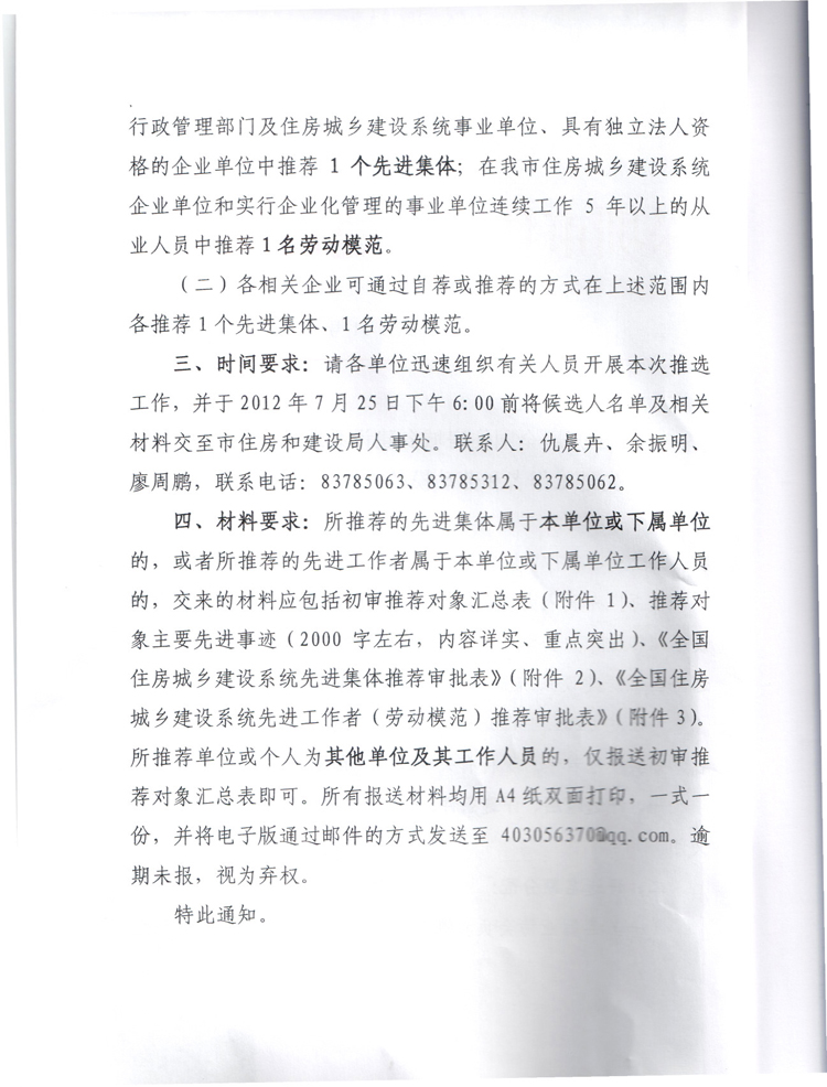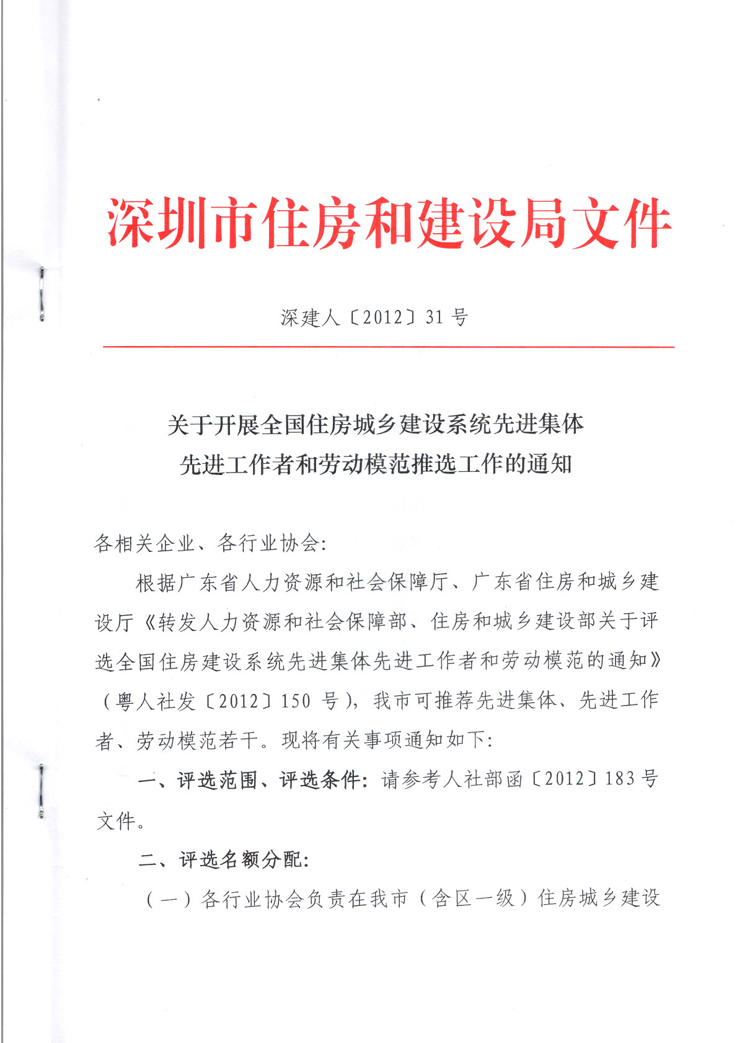 关于开展全国住房城乡建设系统先进集体先进工作者和劳动模范推选工作的通知