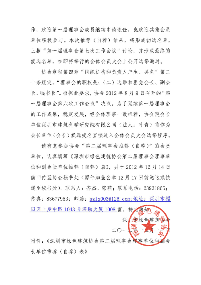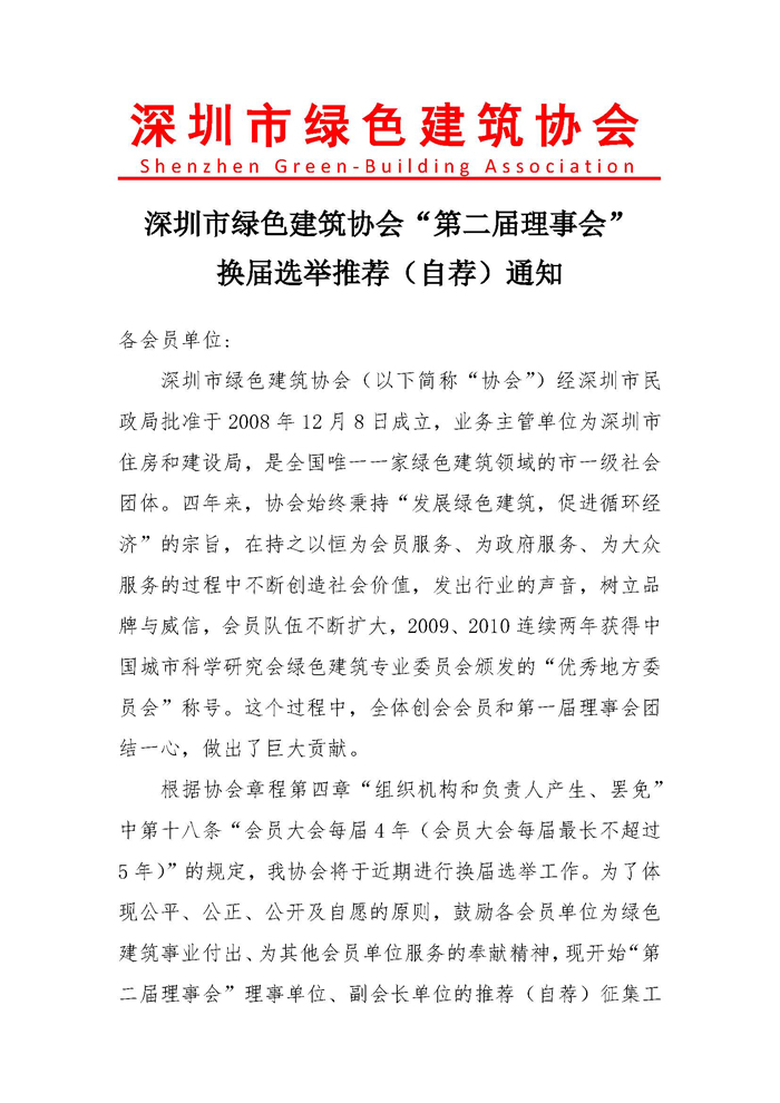 深圳市绿色建筑协会换届改选及推荐(自荐)第二届理事会理事单位和副会长单位的通知