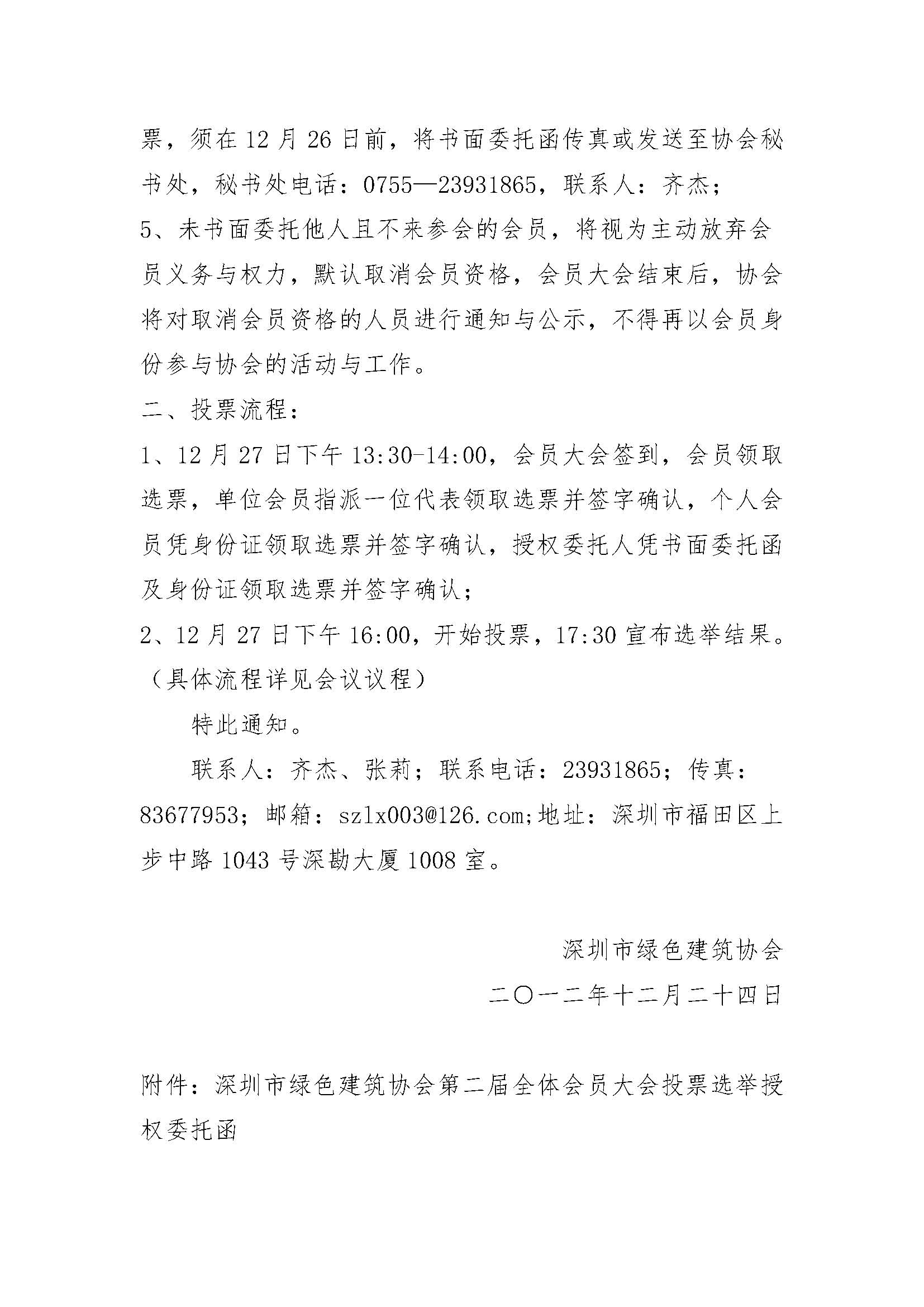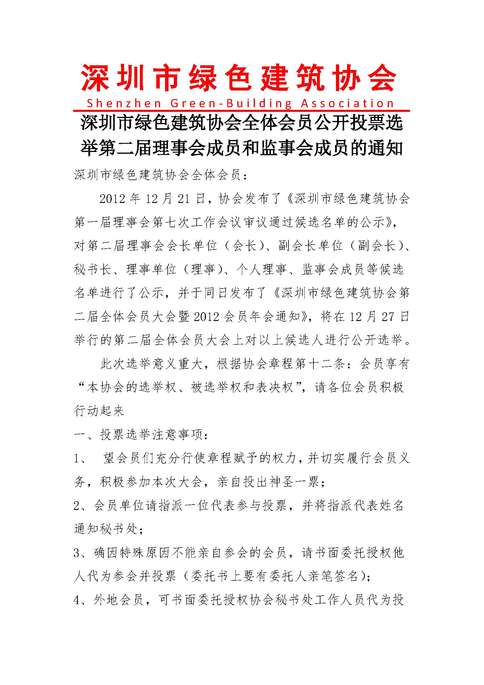 深圳市绿色建筑协会第二届全体会员大会投票选举通知