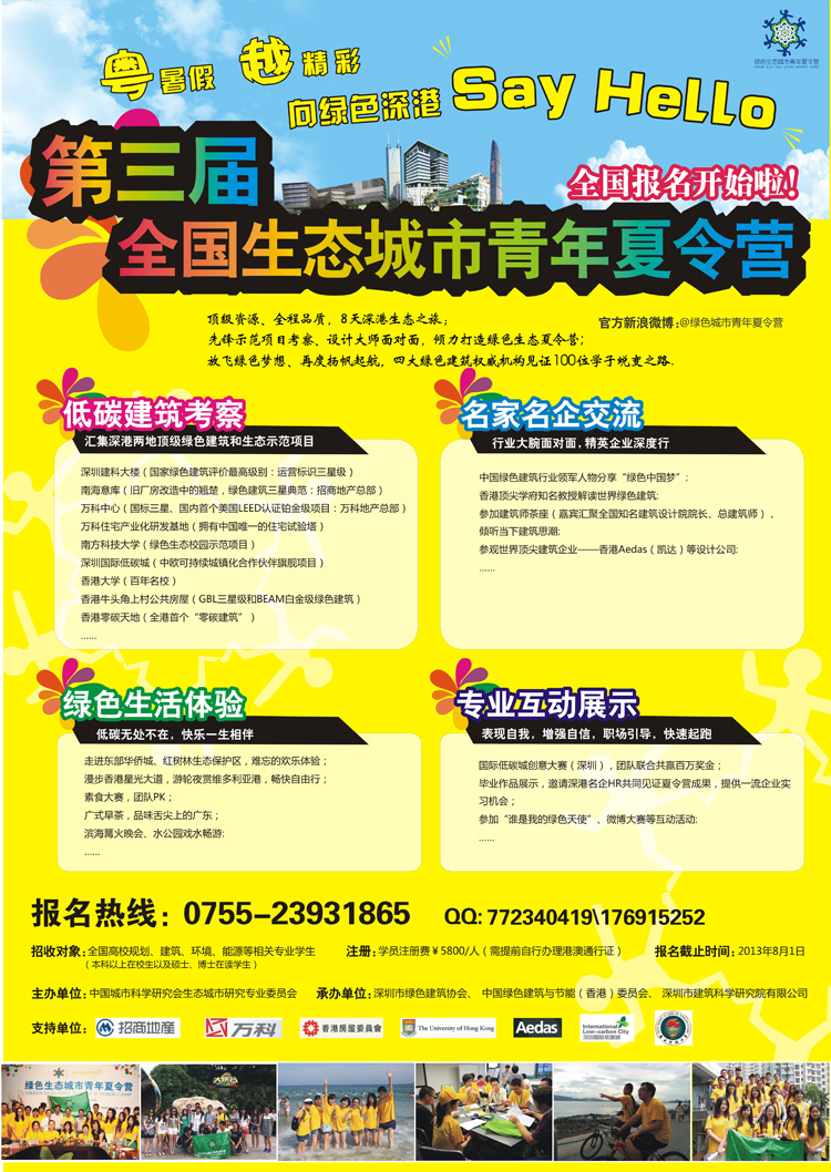“粤”暑假、越快乐,八月相约“绿色深港”,顶级资源、精彩内容、物超所值,让绿色人生在这个暑假重新定义——欢迎全国各大院校的青年朋友们踊跃报名。