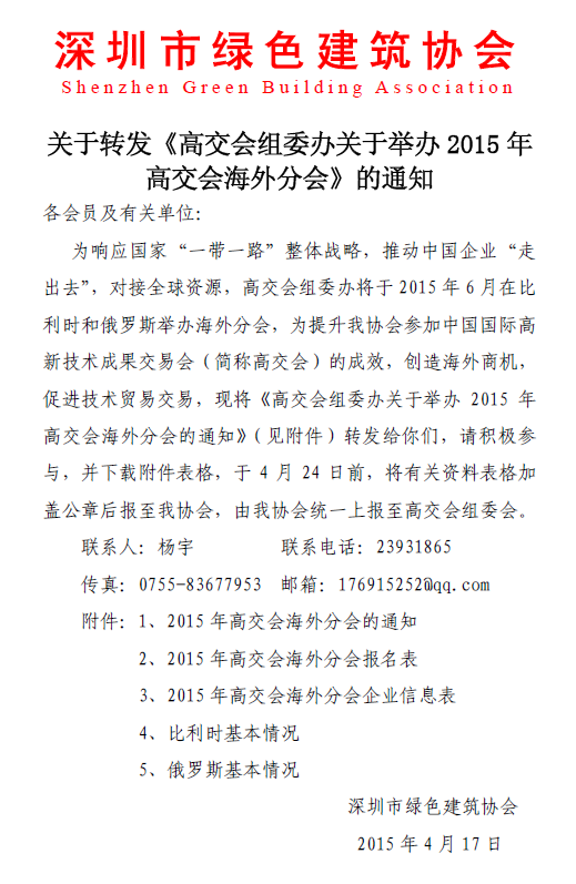 关于转发《高交会组委办关于举办2015年高交会海外分会》的通知