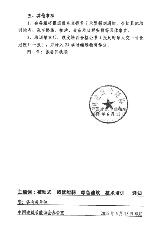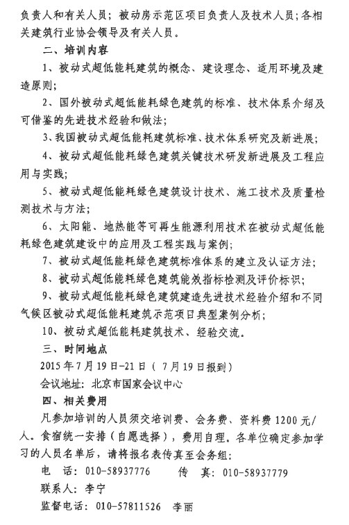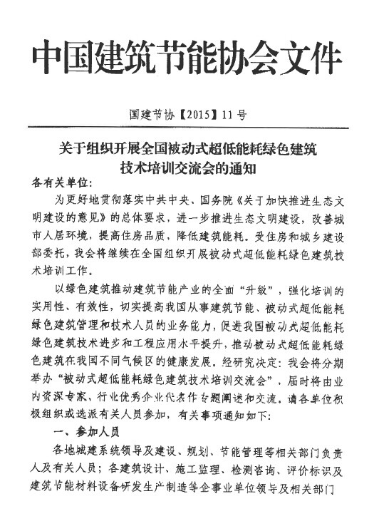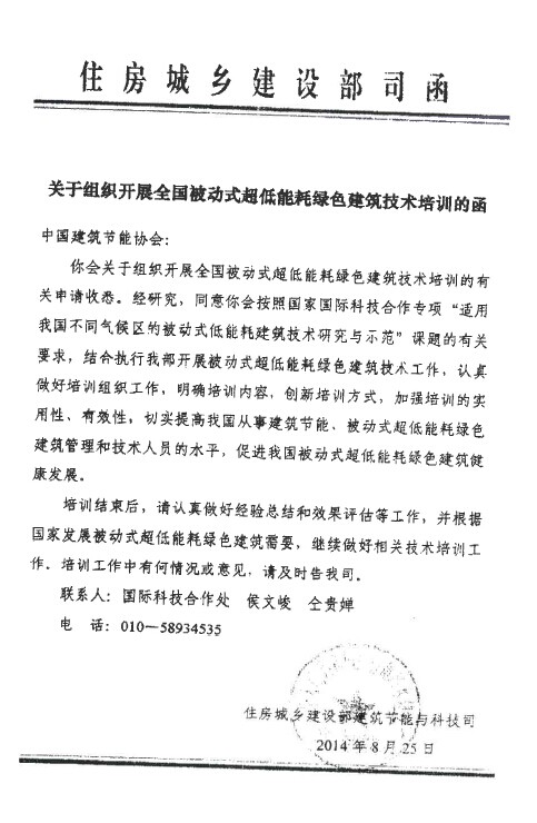 关于组织开展全国被动式超低能耗绿色建筑技术培训班的函