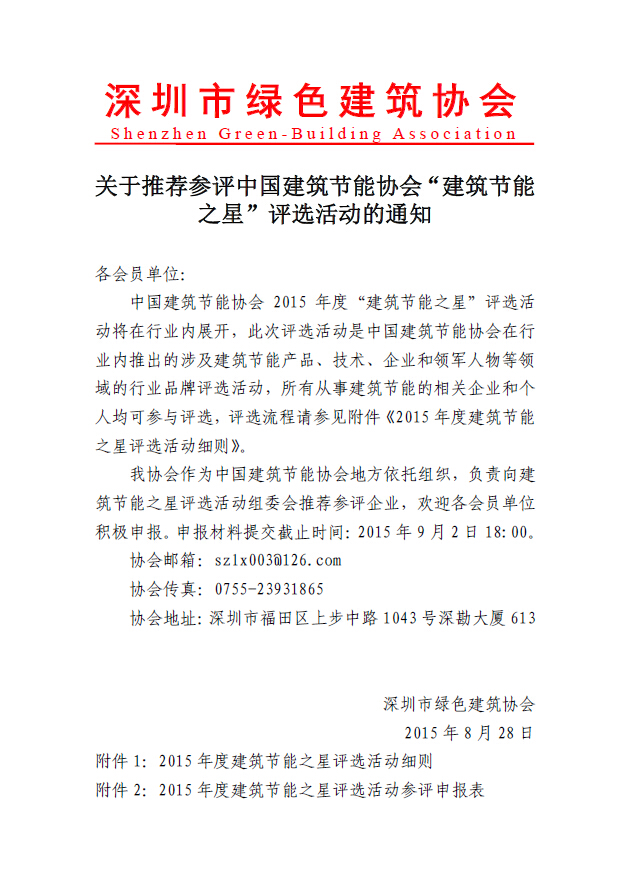 附件2:2015年度建筑节能之星评选活动参评申报表