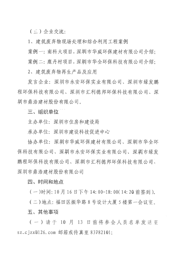 深圳市住房和建设局关于举办第二期建设科技讲堂-建筑废弃物减排与综合利用的通知