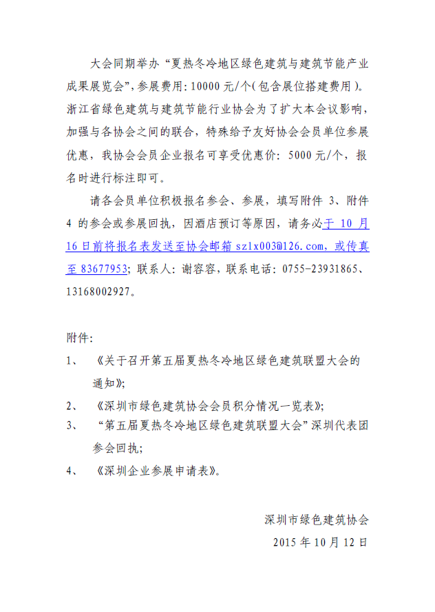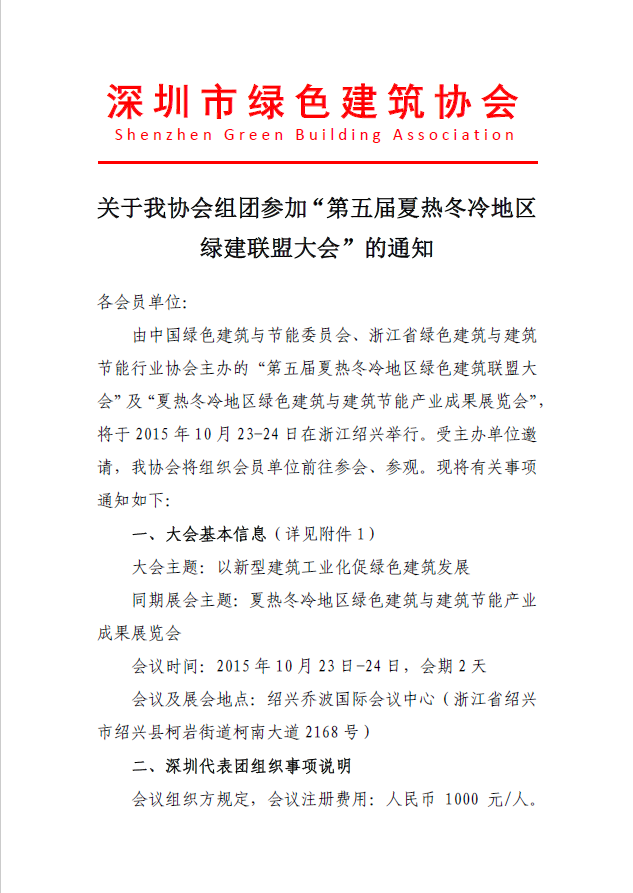 附件1:第五届夏热冬冷地区绿建联盟大会通知(深圳地区)