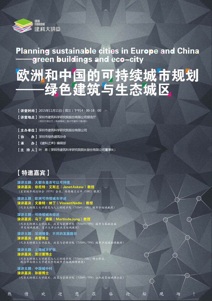 建科大讲堂之关于举办《欧洲和中国的可持续城市规划——绿色建筑与生态城区》