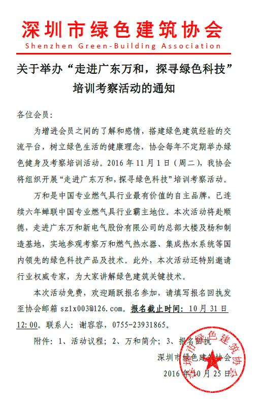 关于举办“走进广东万和,探寻绿色科技” 培训考察活动的通知
