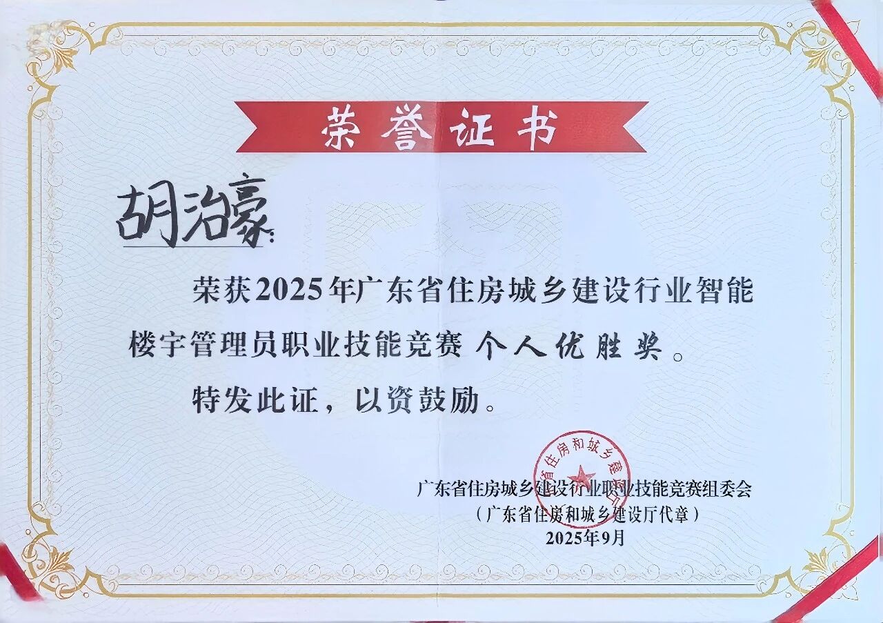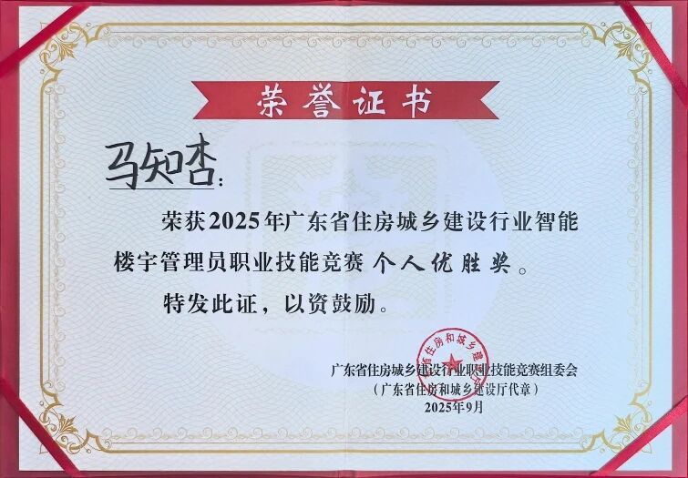 9月16日至18日,由广东省住房城乡建设厅、省人社厅联合主办的2025年广东省住房城乡建设行业智能楼宇管理员职业技能竞赛在清远举行。此次竞赛规模盛大,共有31支代表队、93名选手同场竞技。楼宇科技胡治豪、马知杏以及广州公司贺炳林三人代表招商积余出征。