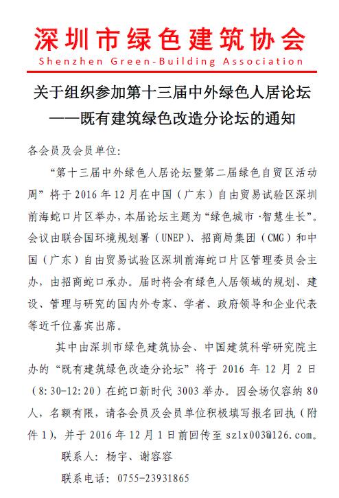 关于组织参加第十三届中外绿色人居论坛既有建筑绿色改造分论坛的通知