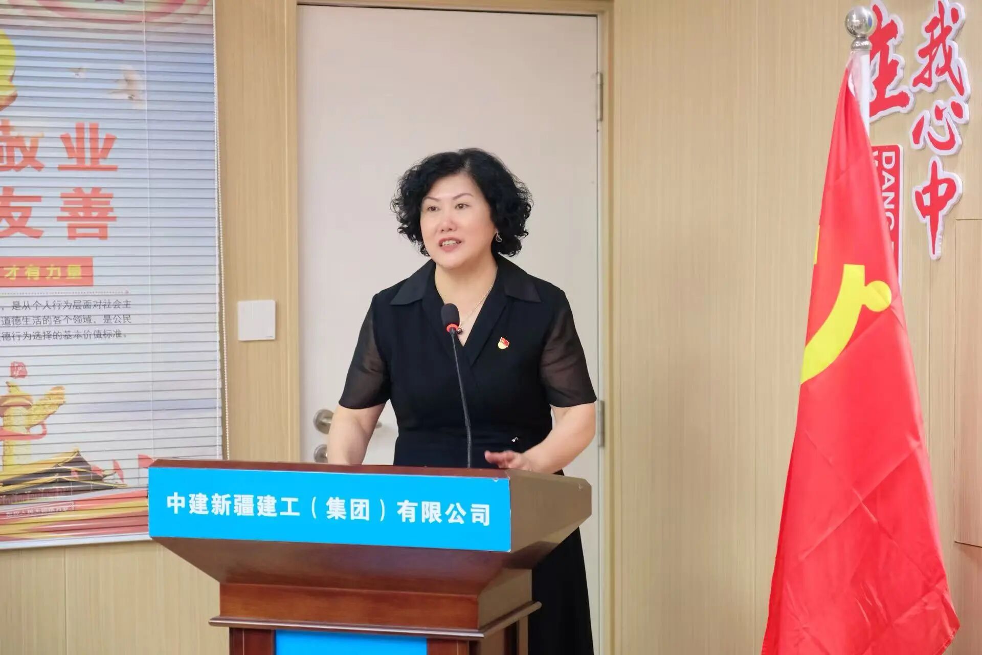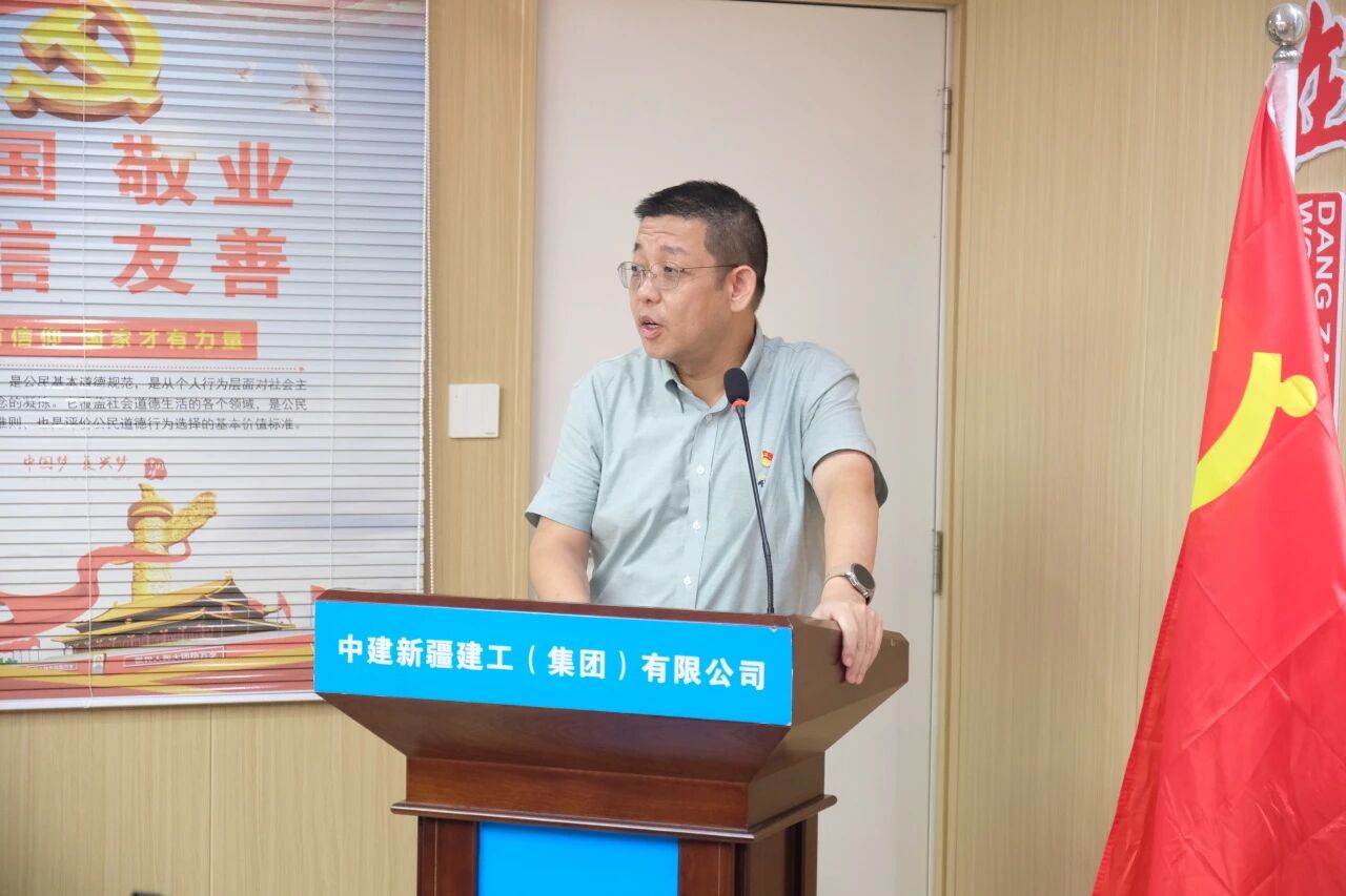 中建新疆建工华南公司深圳分公司党总支组织委员、副总经理周重阳致辞,并在随后介绍党总支工作开展情况