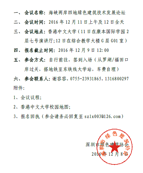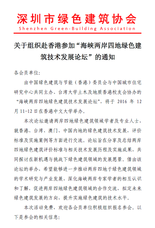 关于组织赴香港参加“海峡两岸四地绿色建筑技术发展论坛”的通知