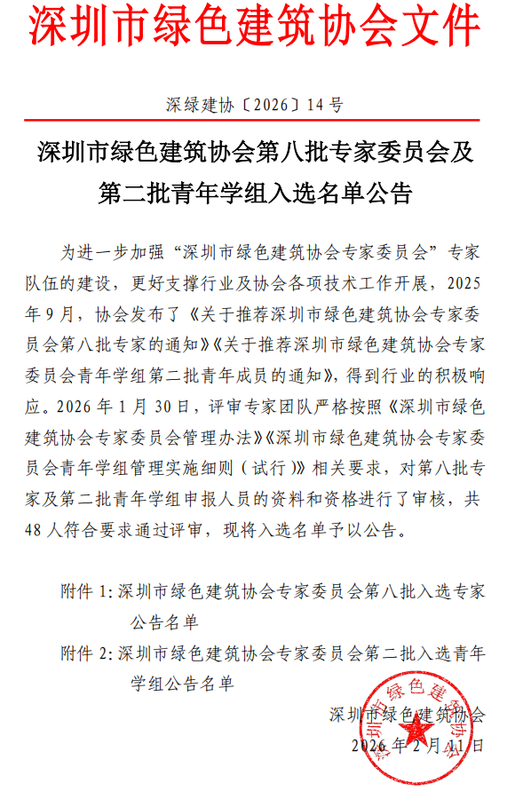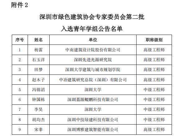 深圳市绿色建筑协会第八批专家委员会及第二批青年学组入选名单公告