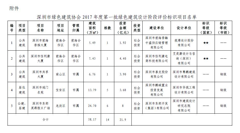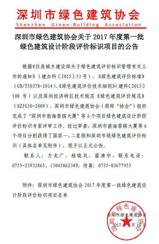 关于2017年度第一批绿色建筑设计阶段评价标识项目的公告