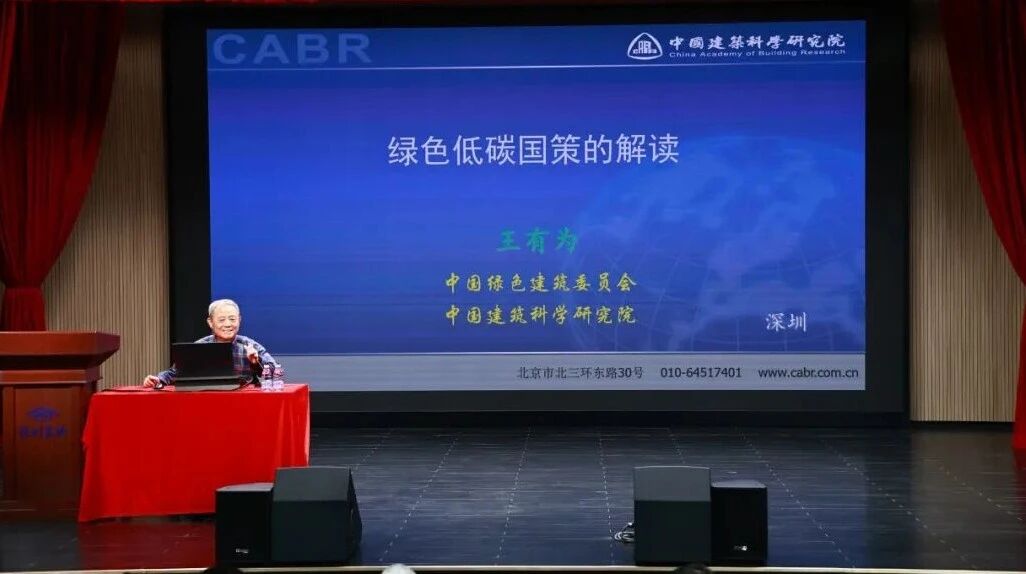 中国城科会绿建委主任王有为作《绿色低碳国策的解读》主题报告,并携手深圳市绿色建筑协会共同向深圳实验学校(高中园)总校长李震宇(照片左一)赠送书籍《绿色建筑100问》