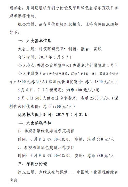 “香港可持续建筑环境全球会议深圳代表团”报名通知