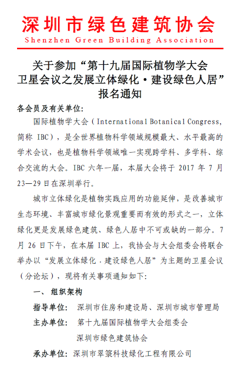 关于参加“第十九届国际植物学大会卫星会议之发展立体绿化·建设绿色人居”报名通知