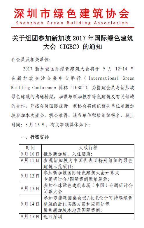 关于组团参加新加坡2017年国际绿色建筑大会(IGBC)的通知