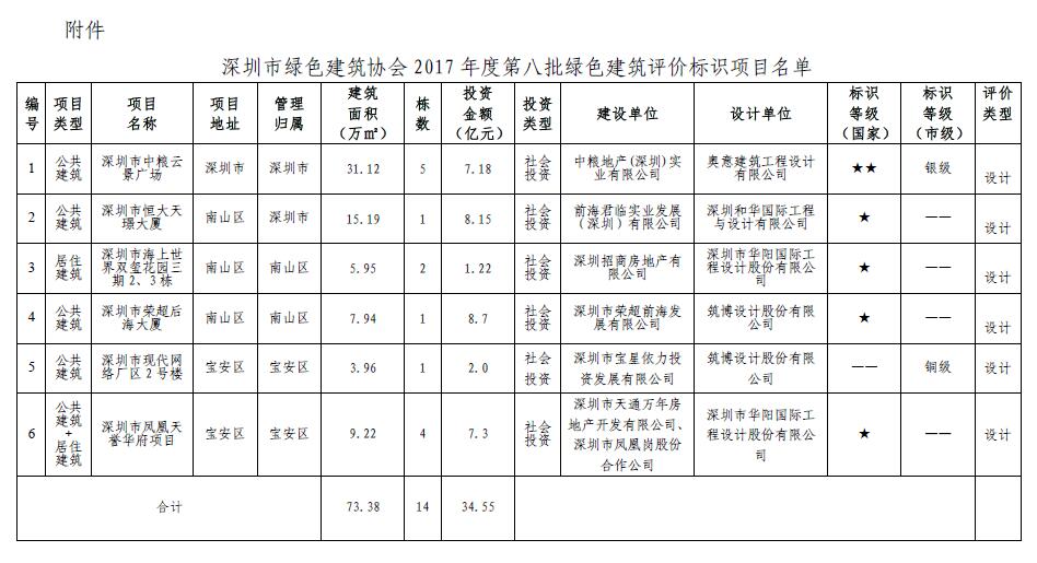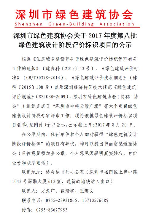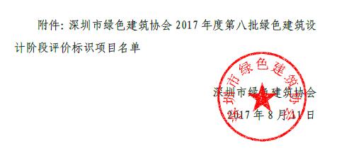 关于2017年度第八批绿色建筑设计阶段评价标识项目的公示