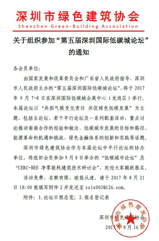 关于组织参加“第五届深圳国际低碳城论坛”的通知