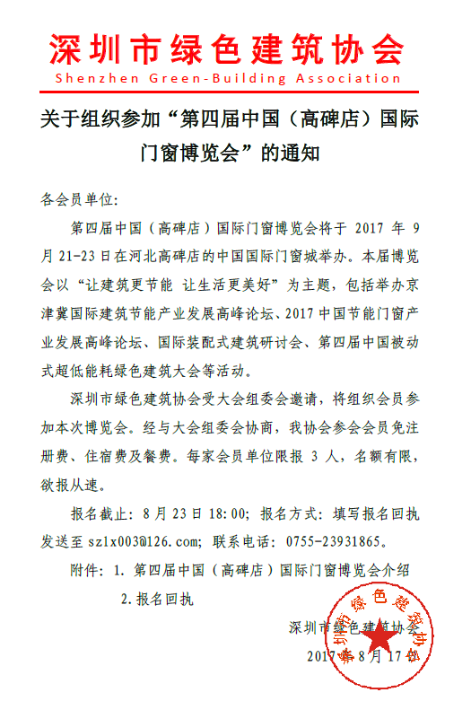 关于组织参加“第四届中国(高碑店)国际门窗博览会”的通知