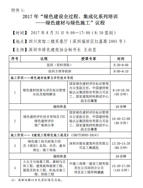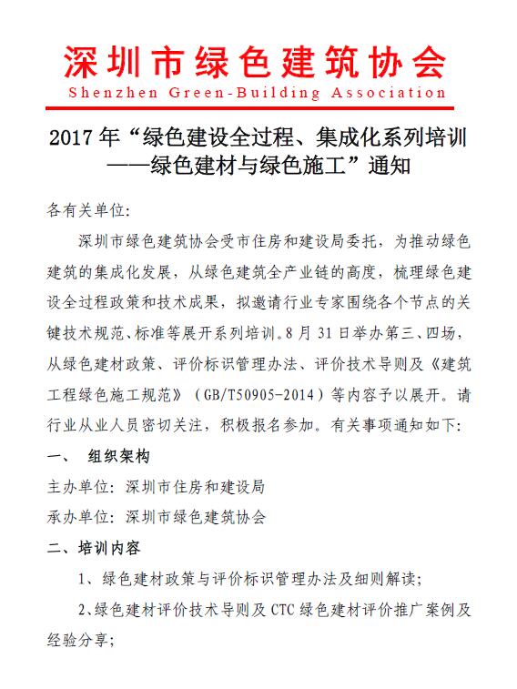 2017年“绿色建设全过程、集成化系列培训——绿色建材与绿色施工”通知