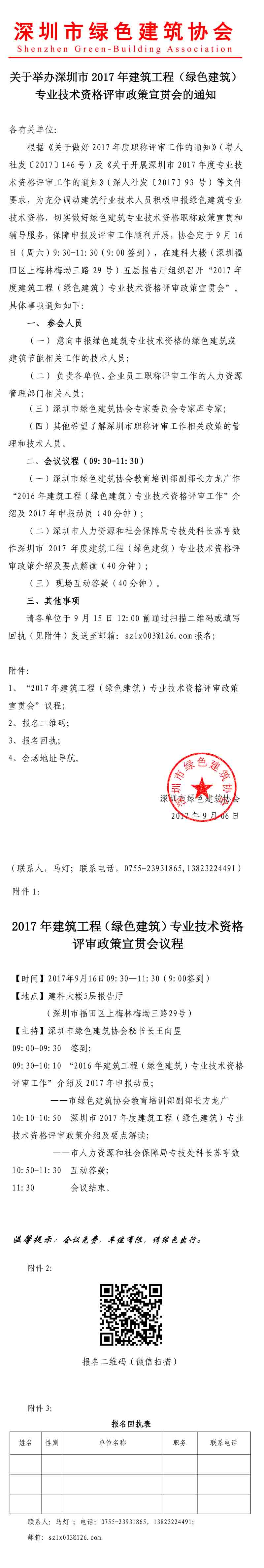 关于举办深圳市2017年建筑工程(绿色建筑)专业技术资格评审政策宣贯会的通知