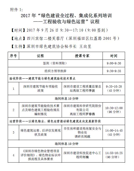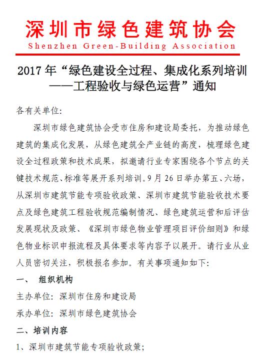 2017年“绿色建设全过程、集成化系列培训——工程验收与绿色运营”通知