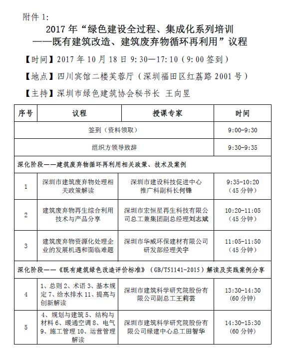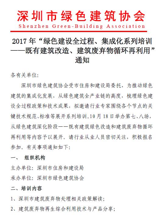 2017年“绿色建设全过程、集成化系列培训——既有建筑改造、建筑废弃物循环再利用”通知