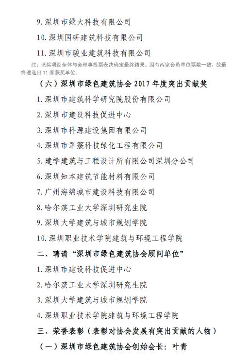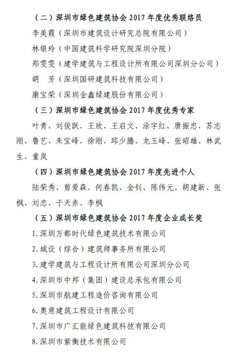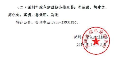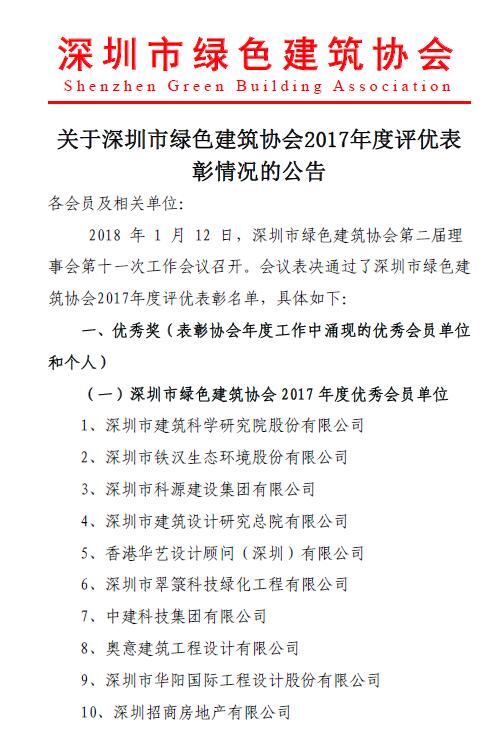 关于深圳市绿色建筑协会2017年度评优表彰情况的公告
