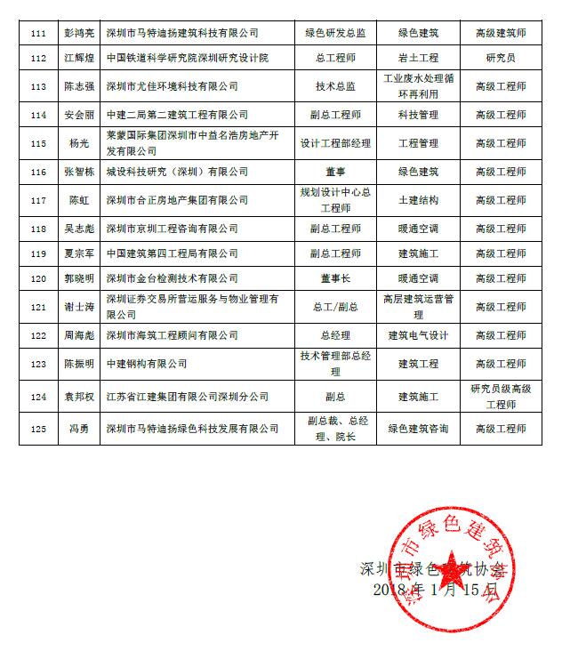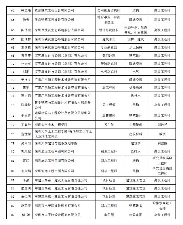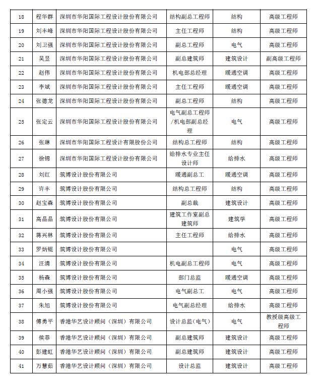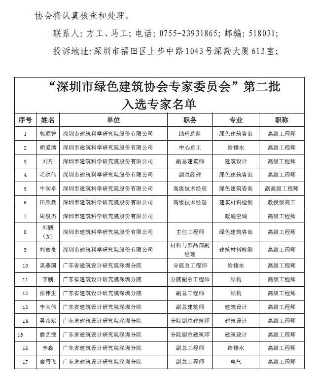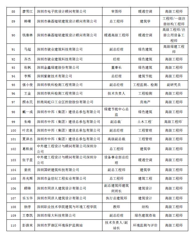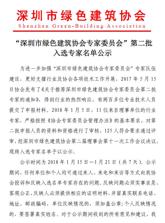 “深圳市绿色建筑协会专家委员会”第二批入选专家名单公示