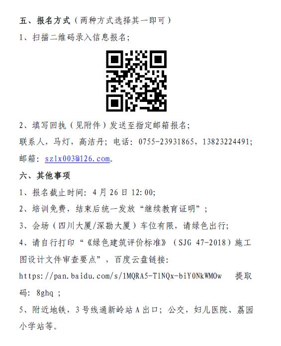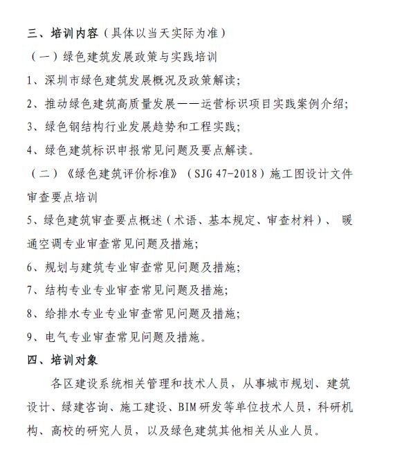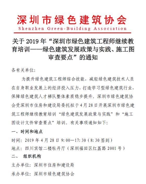 2019年“深圳市绿色建筑工程师继续教育培训——绿色建筑发展政策与实践、施工图审查要点”通知
