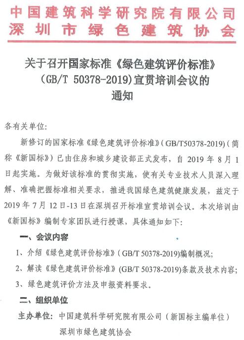附件1:《绿色建筑评价标准》(GBT 50378-2019)宣贯培训报名须知