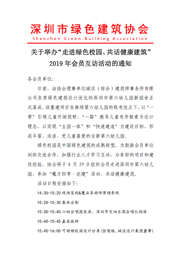 关于举办“走进绿色校园、共话健康建筑”2019年会员互访活动的通知