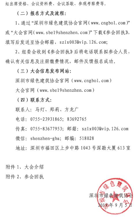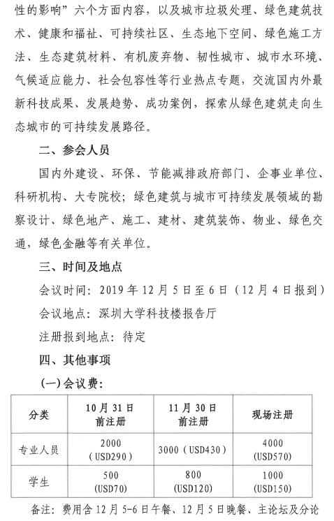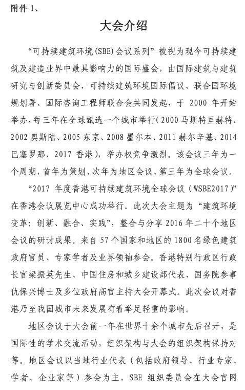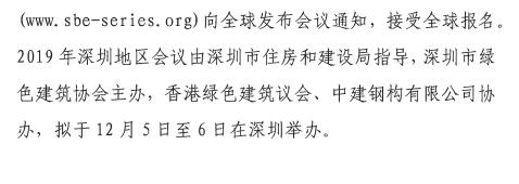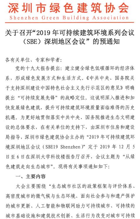 关于召开“2019年可持续建筑环境系列会议(SBE)深圳地区会议”的预通知