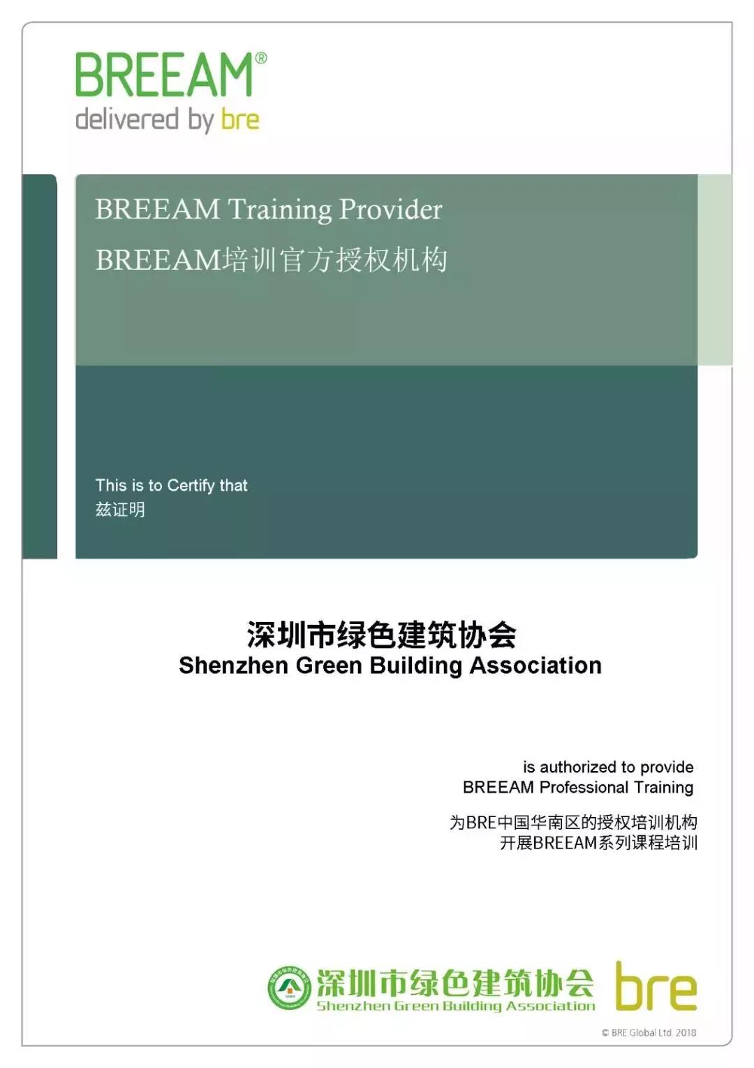 日前,深圳市绿色建筑协会(简称“协会”)正式成为英国建筑科学研究院(BRE)在中国华南地区的BREEAM培训官方授权机构,有关培训服务范围从深圳延伸至整个华南地区。