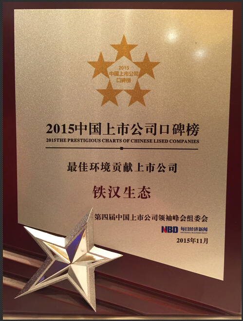11月7日,第四届中国上市公司领袖峰会暨“2015中国上市公司口碑榜”颁奖典礼在成都举行。会上,“2015中国上市公司口碑榜”正式揭榜,作为一家优秀的生态环境建设上市公司,凭借对美丽中国建设的卓越贡献,铁汉生态荣获“最佳环境贡献上市公司”奖项。