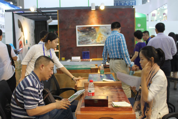 利用岩态重彩工艺,爱思宝开发出“砚山”家装艺术品系列。该技术采用独创常温瓷化,将岩态重彩装饰与木和石充分结合,形成“砚山”系列产品。经过独特的设计符号,创作出一系列中国风的茶盘、屏风、工艺品等家居艺术品,具有极高的审美价值和收藏价值。根据岩态重彩永不褪色的特点,又研发出以皮革为画板的绘皮新工艺,衍生出个性十足的皮衣、皮包、皮具等系列产品。其颜色或艳丽或质朴,经久不衰如同敦煌壁画,层次可轻薄可饱满,犹如中世纪唯美的油画