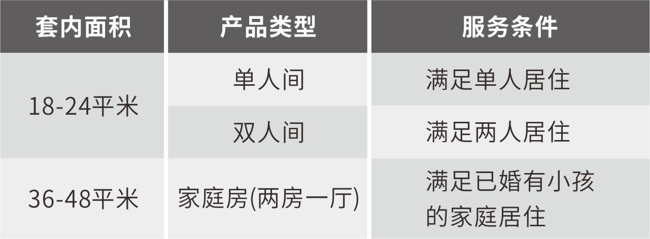 根据未来青年单身、双人、三口之家的家庭组成状态,需考虑三种不同的居住产品设计:
