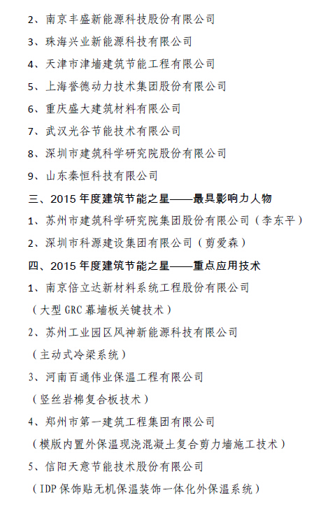 二、2015年度建筑节能之星——最具影响力企业