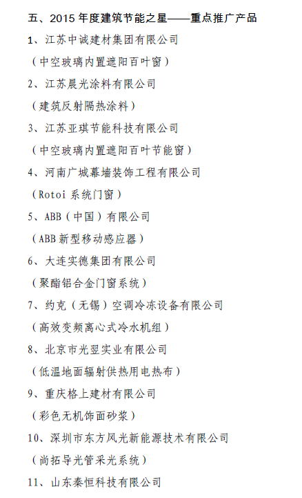 四、2015年度建筑节能之星——重点推广产品