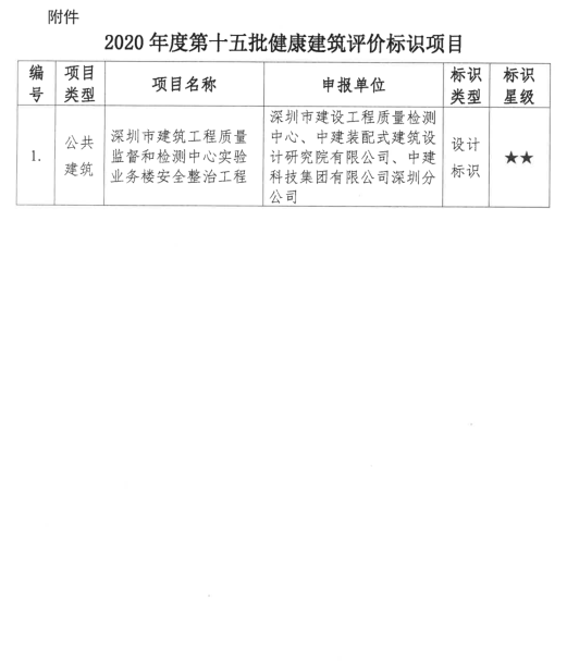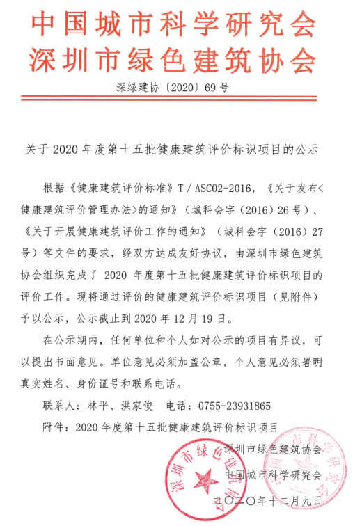 关于2020年度第十五批健康建筑评价标识项目的公示