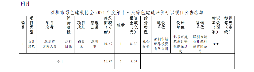 上一条:深圳市绿色建筑协会关于2021 年第十四批 绿色建筑评价标识项目的公示