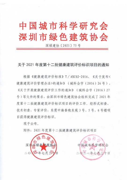关于2021年度第十二批健康建筑评价标识项目的通知