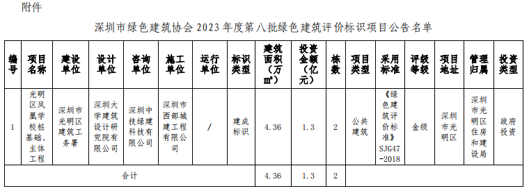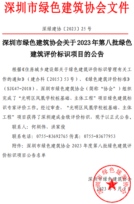深圳市绿色建筑协会关于2023年第八批绿色建筑评价标识项目的公告