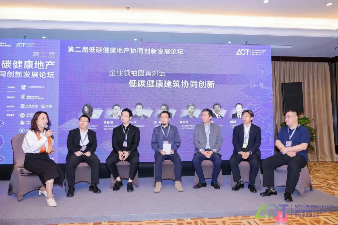 协会副会长、香港华艺设计顾问(深圳)有限公司执行总建筑师、创新研究院执行院长陈竹(左一)在“第二届低碳健康地产协同创新发展论坛”中主持企业领袖圆桌对话,招商局蛇口工业区控股股份有限公司城市研究院院长助理陈佳明(左二)参与对话