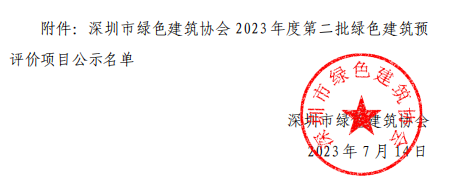 深圳市绿色建筑协会关于2023年第二批绿色建筑预评价标识项目的公示