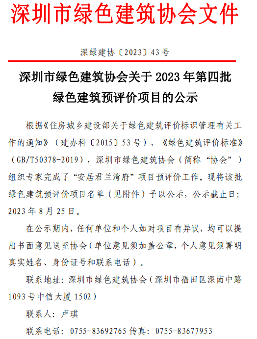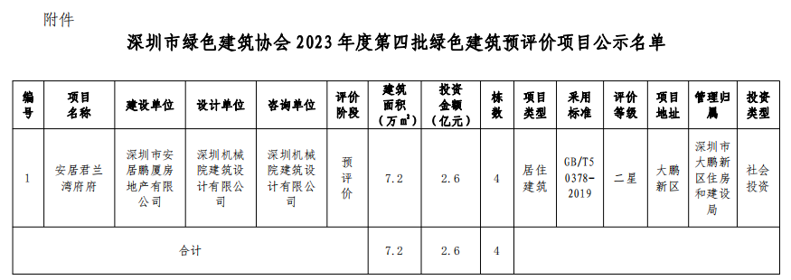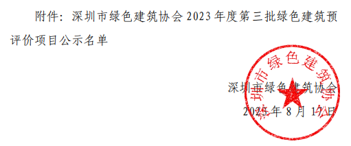 深圳市绿色建筑协会关于2023年第四批绿色建筑预评价项目的公示