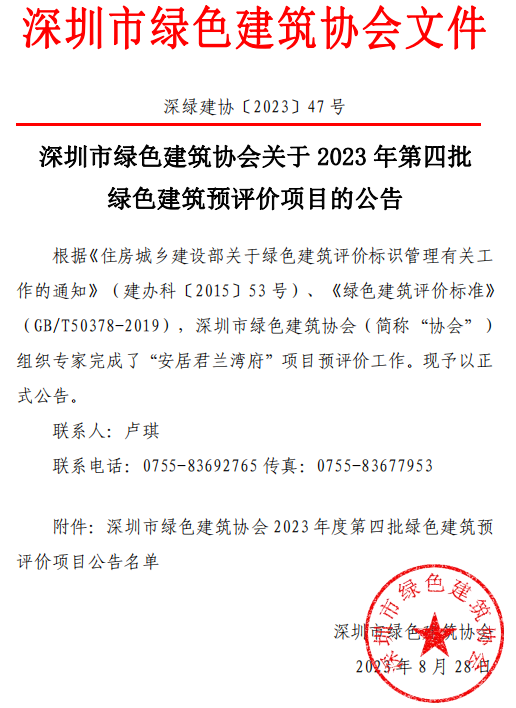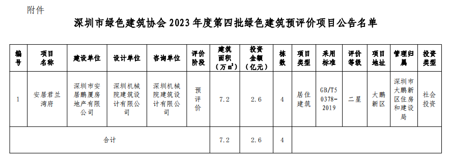 深圳市绿色建筑协会关于2023年第四批绿色建筑预评价项目的公告