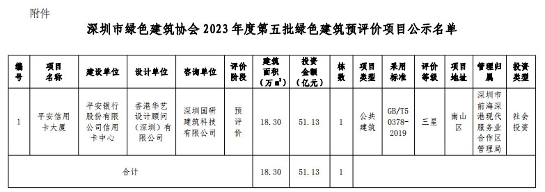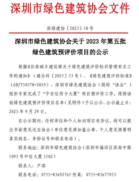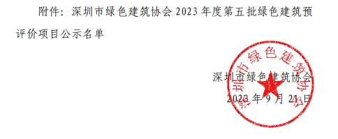 深圳市绿色建筑协会关于2023年第五批绿色建筑预评价标识项目的公示